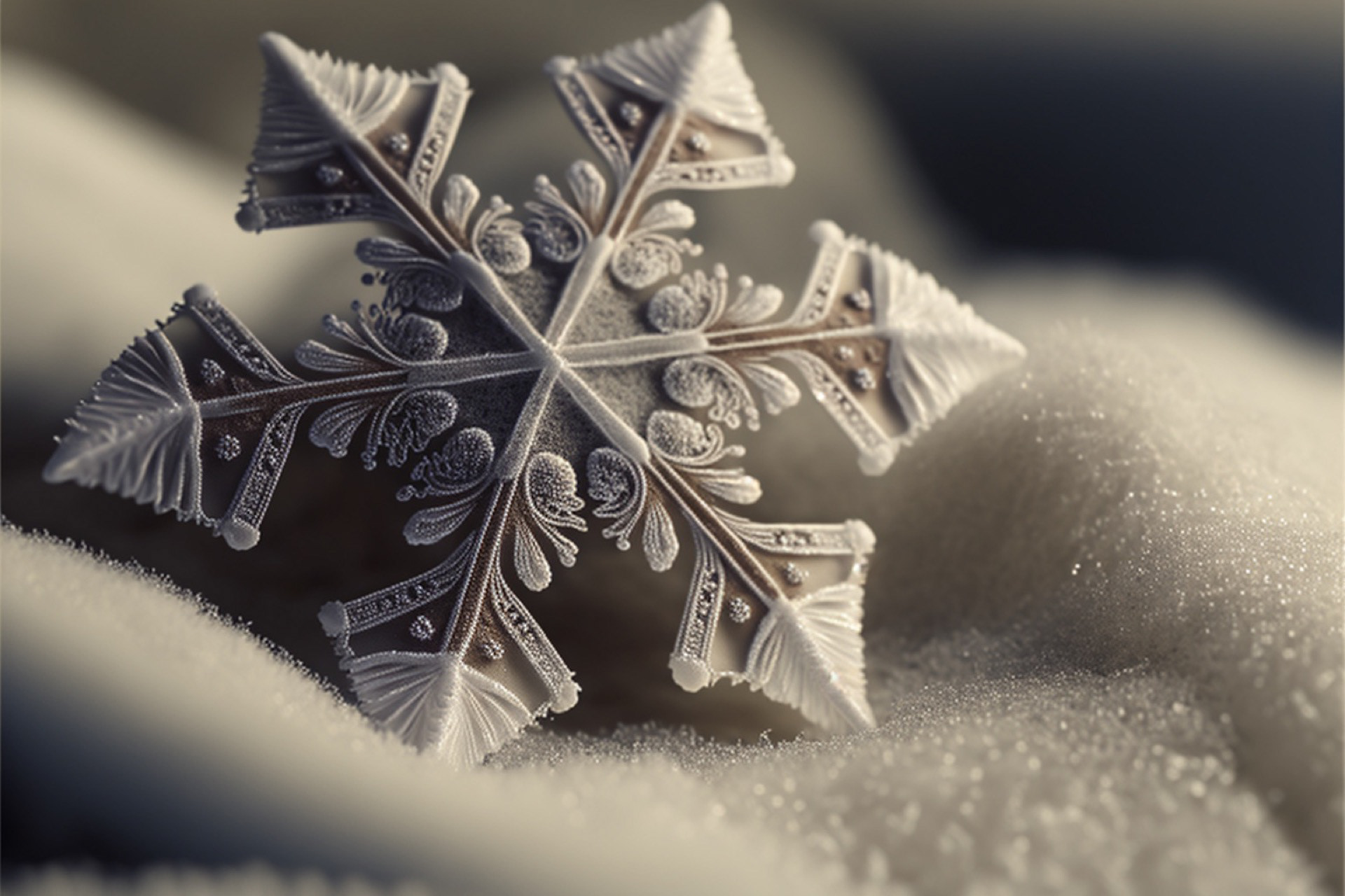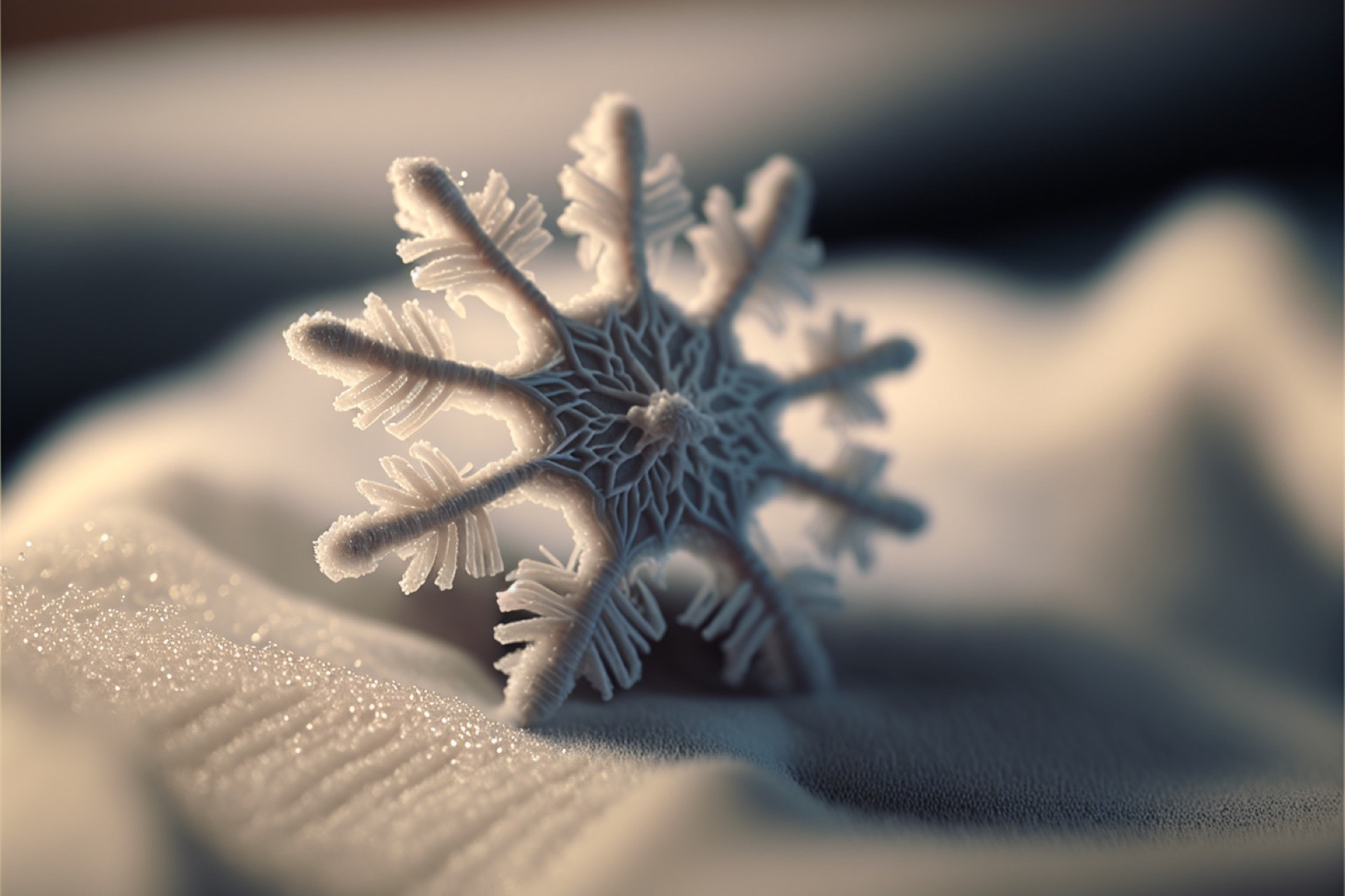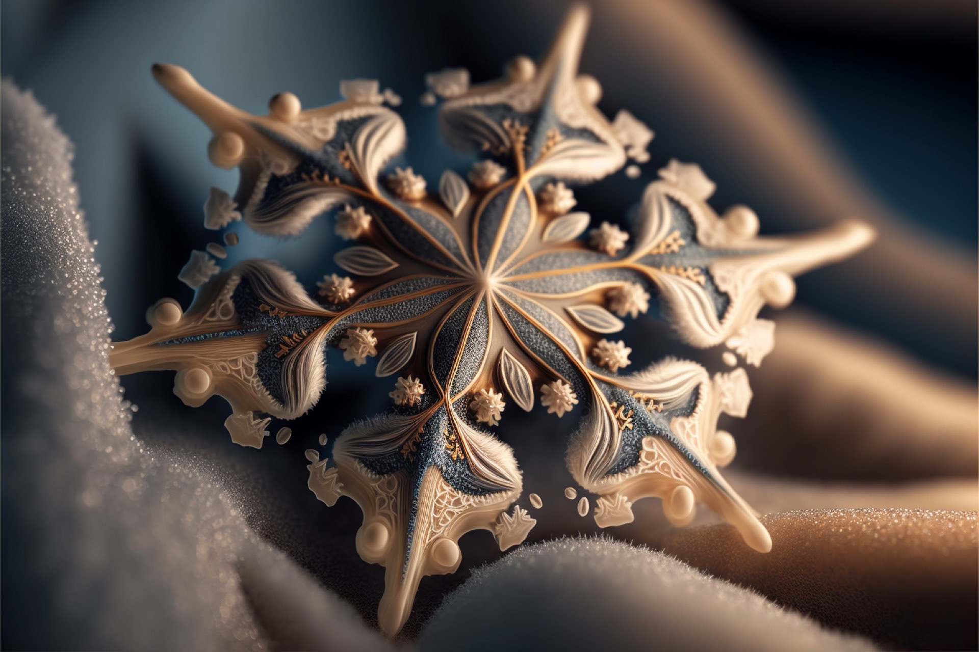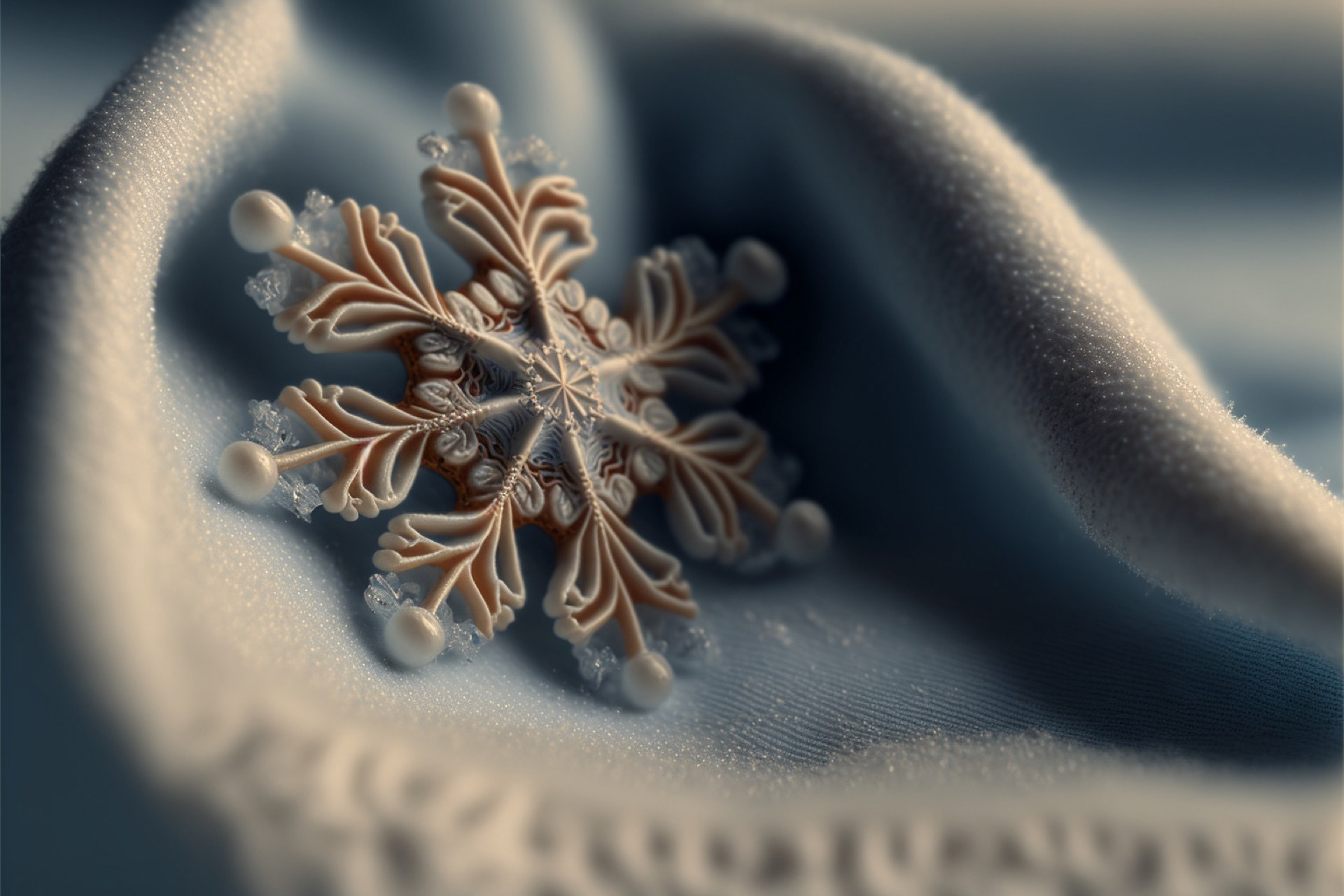 Ho immaginato i fiocchi di neve composti dai più disparati materiali. Immagini realizzate tramite Intelligenza Artificiale.