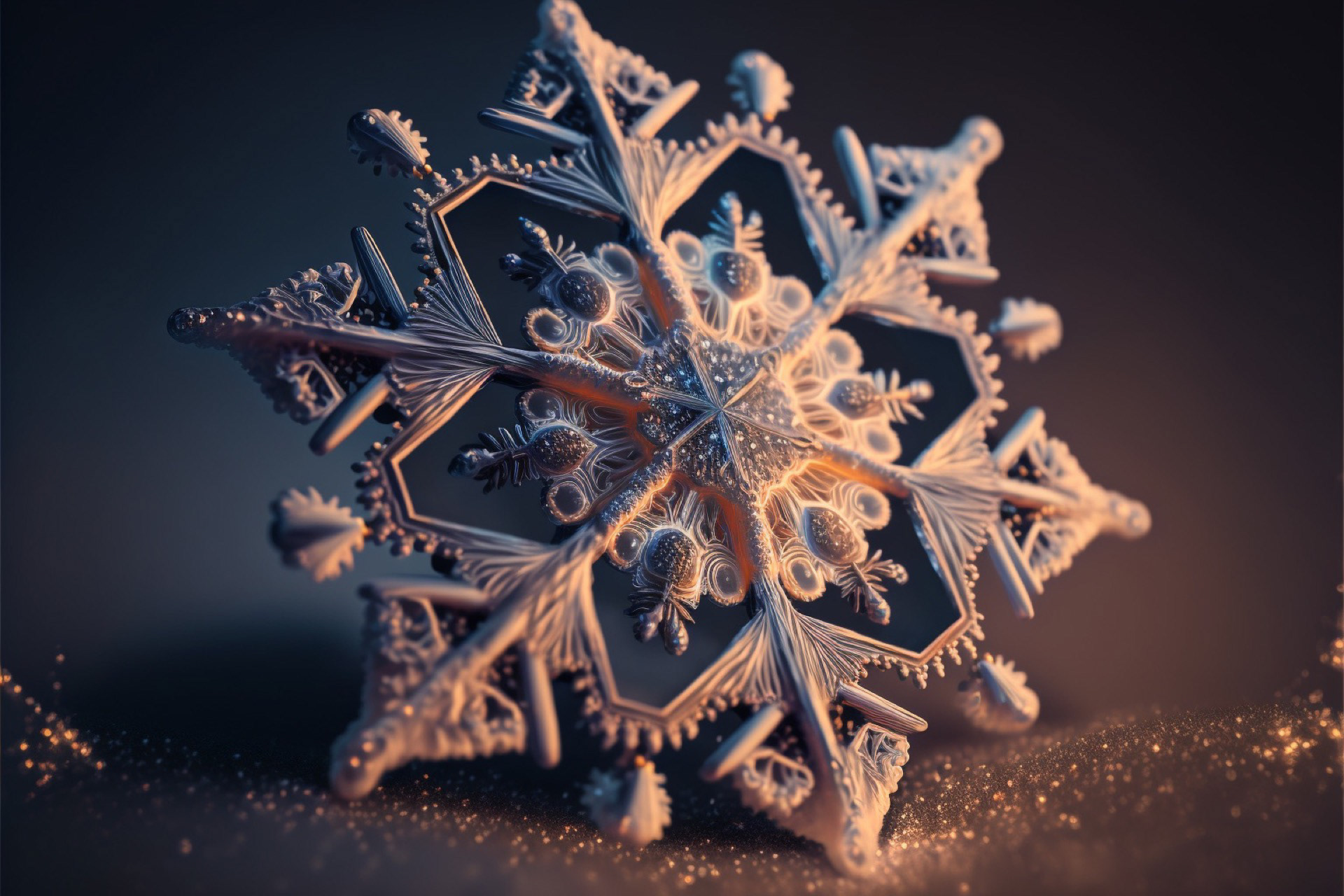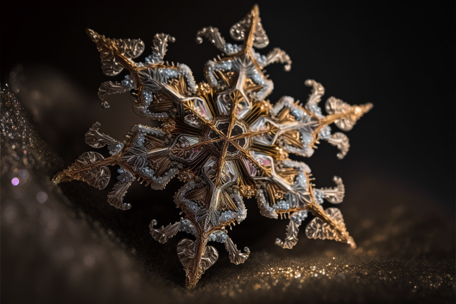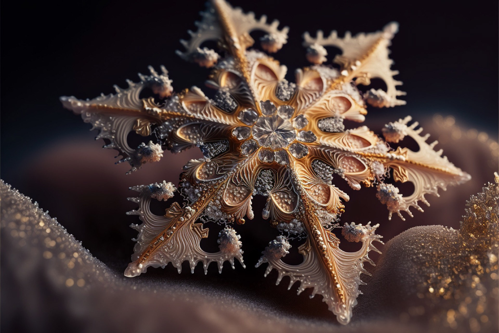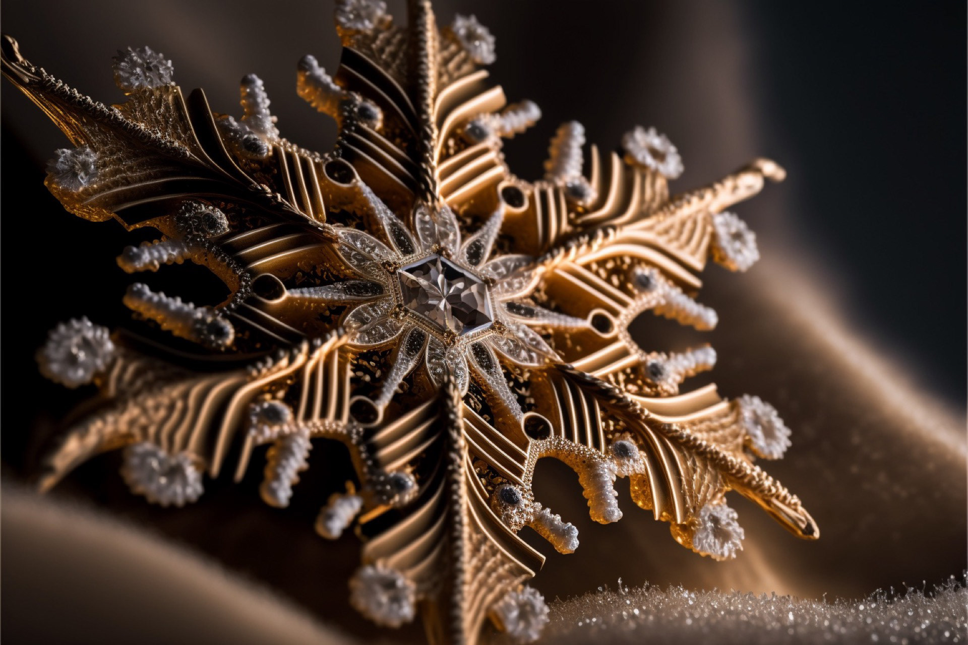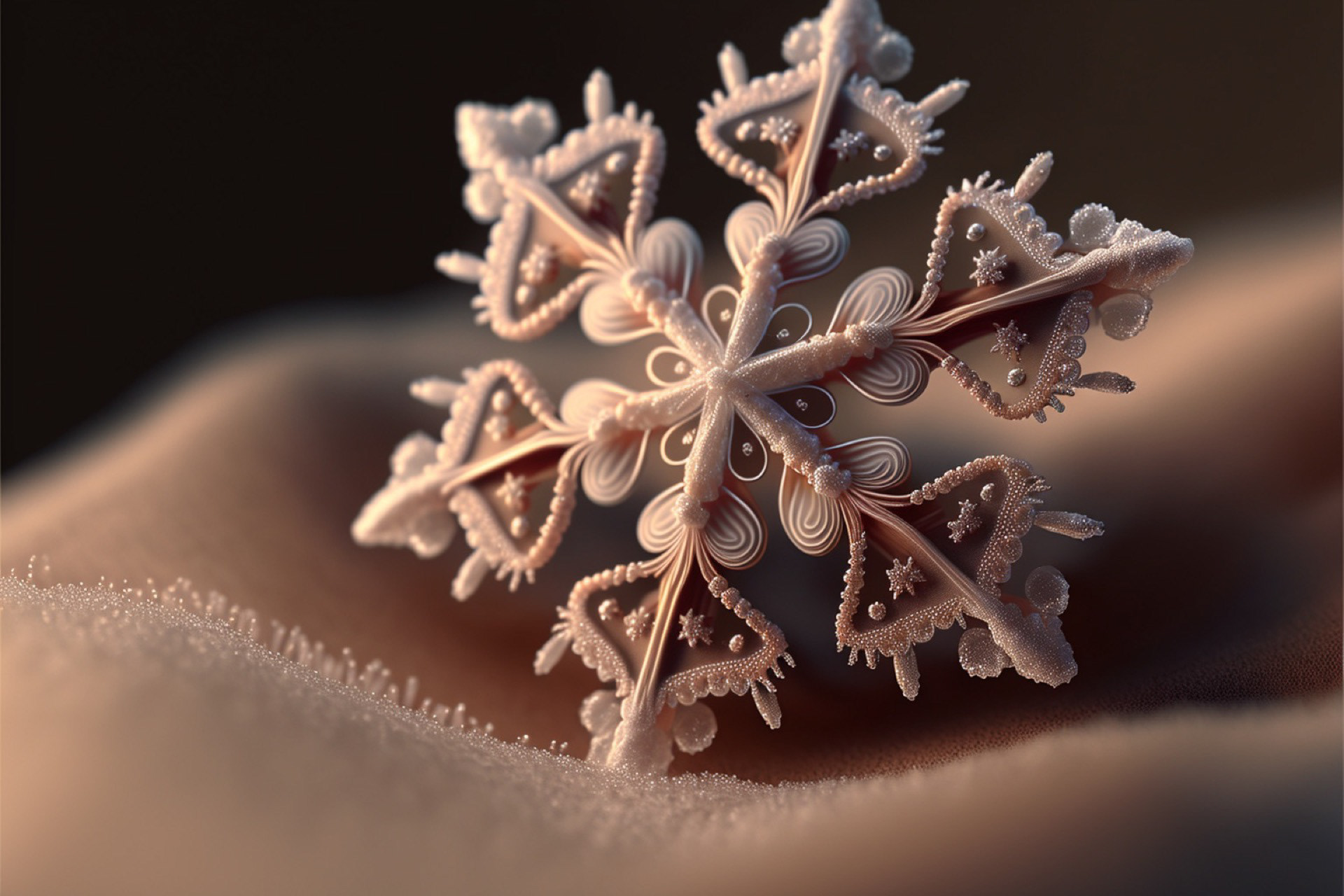 Ho immaginato i fiocchi di neve composti dai più disparati materiali. Immagini realizzate tramite Intelligenza Artificiale.