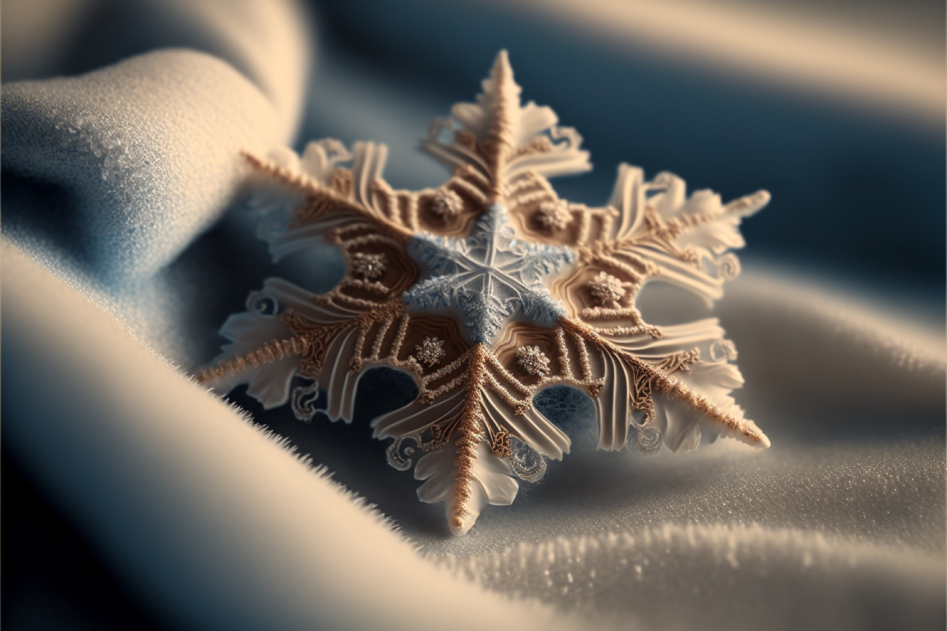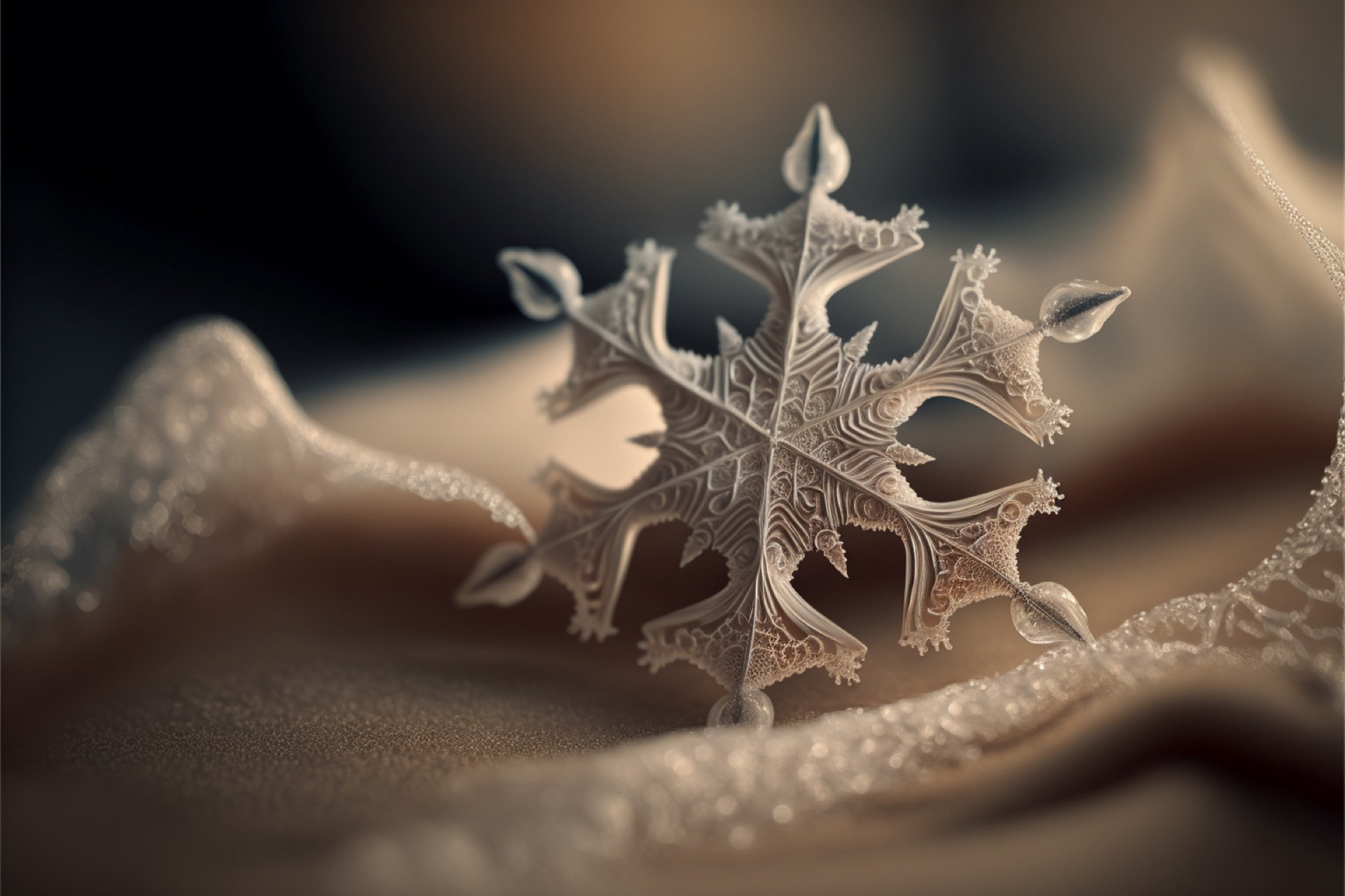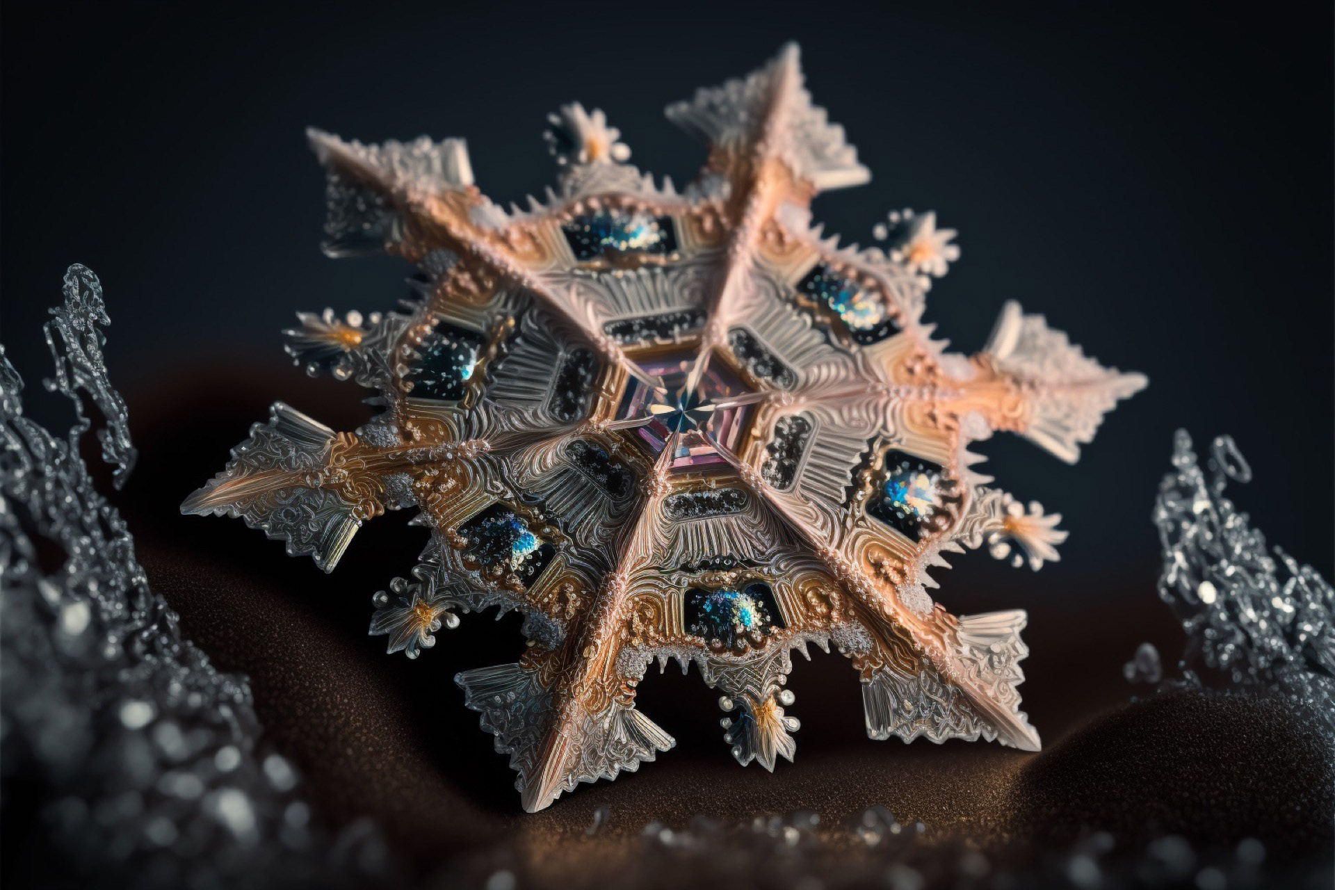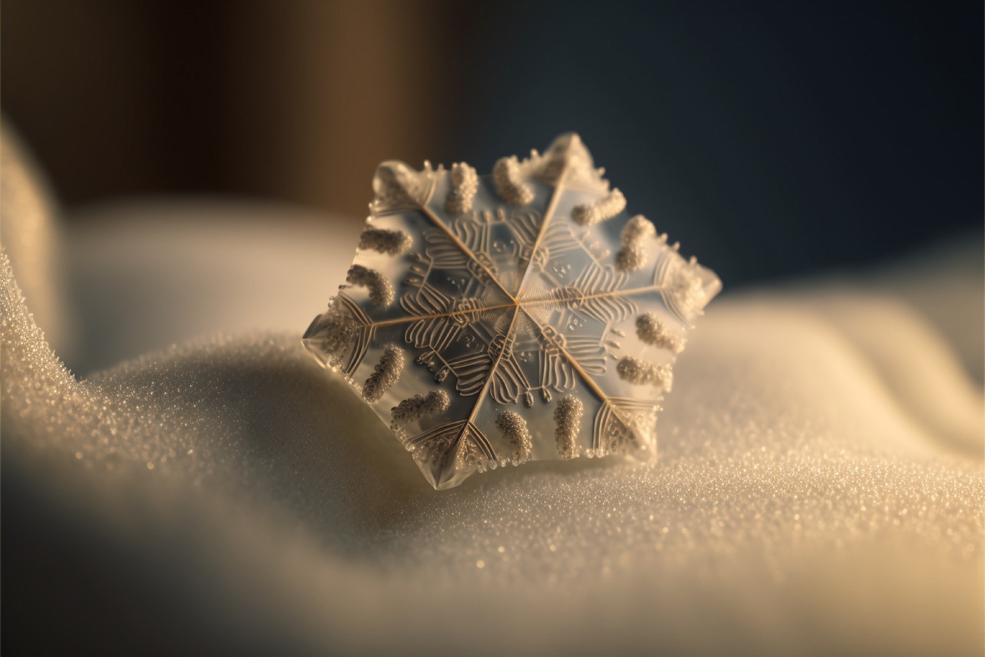 Ho immaginato i fiocchi di neve composti dai più disparati materiali. Immagini realizzate tramite Intelligenza Artificiale.