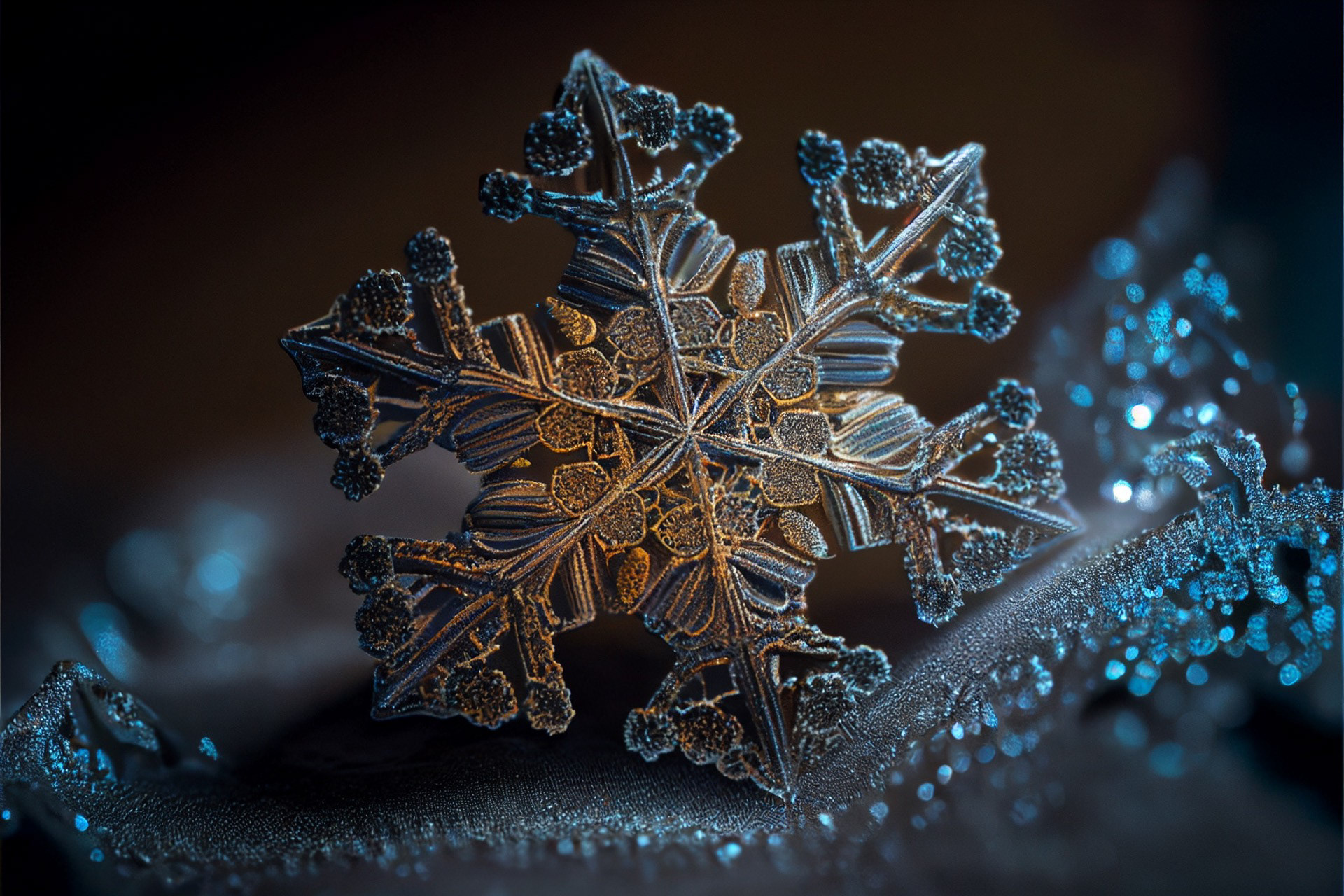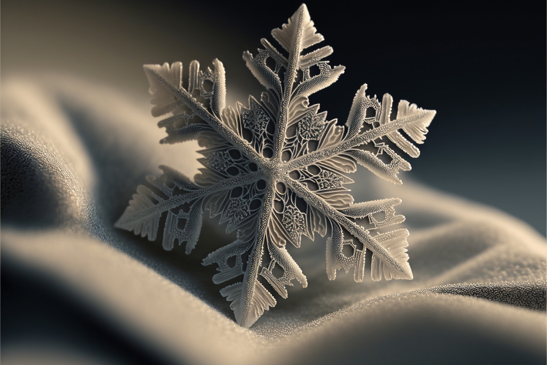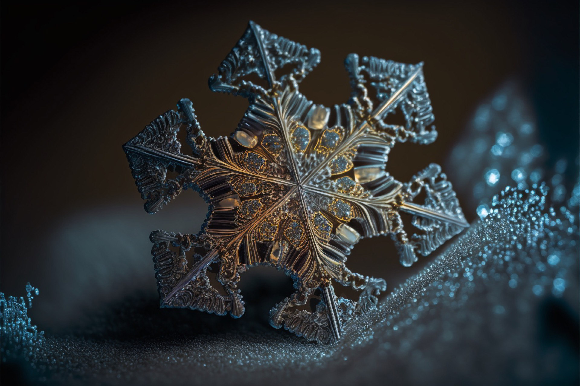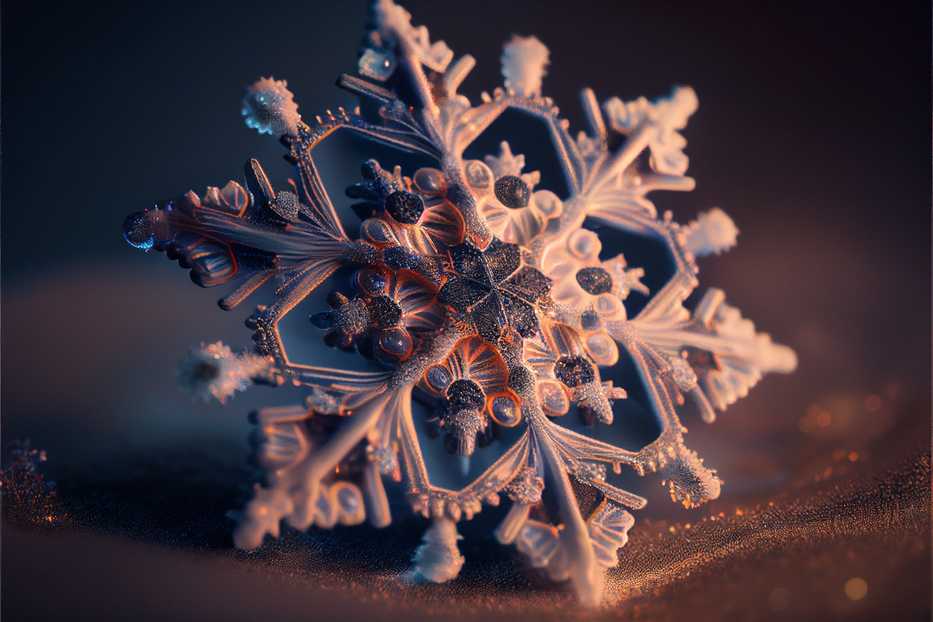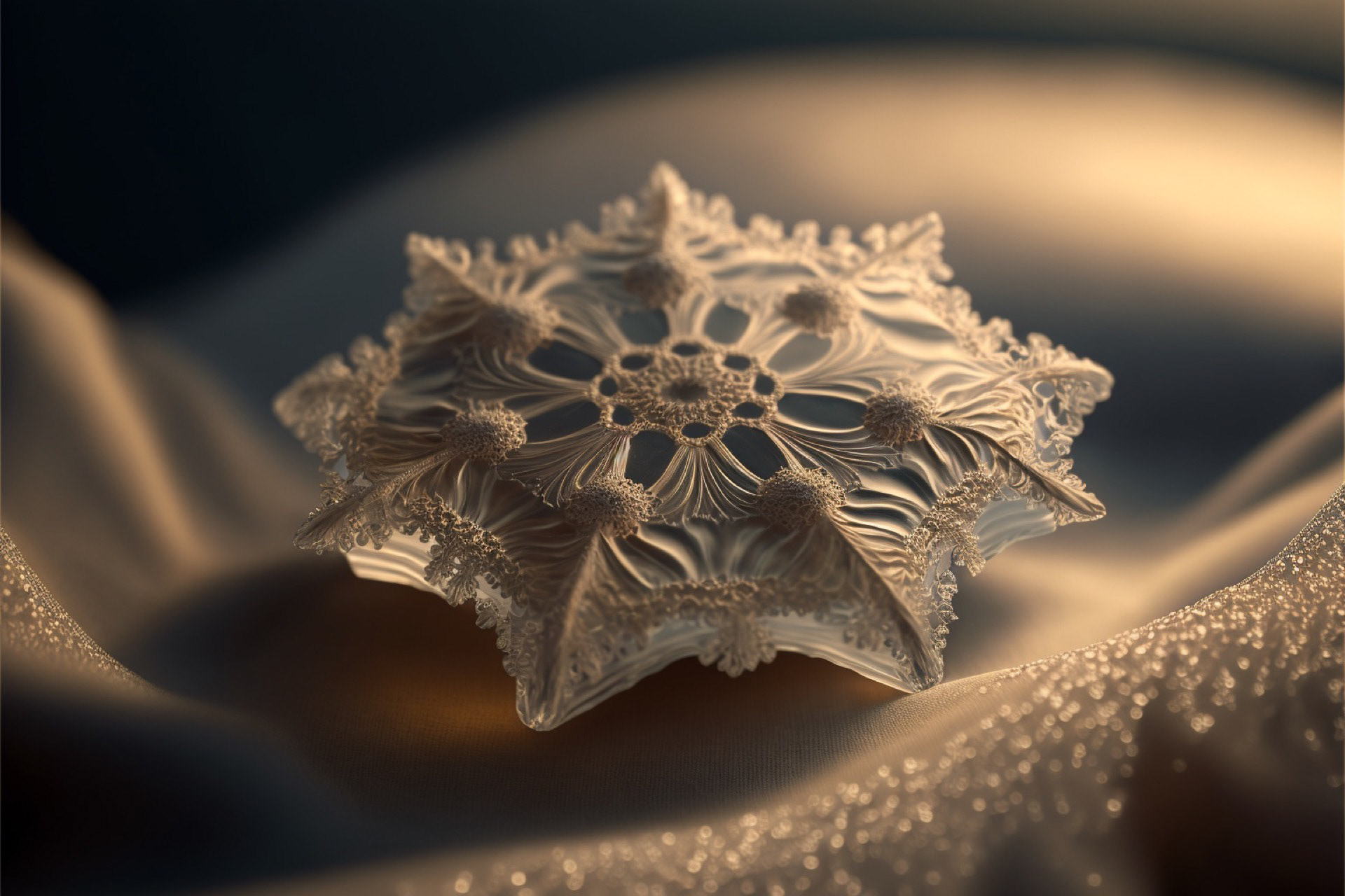 Ho immaginato i fiocchi di neve composti dai più disparati materiali. Immagini realizzate tramite Intelligenza Artificiale.